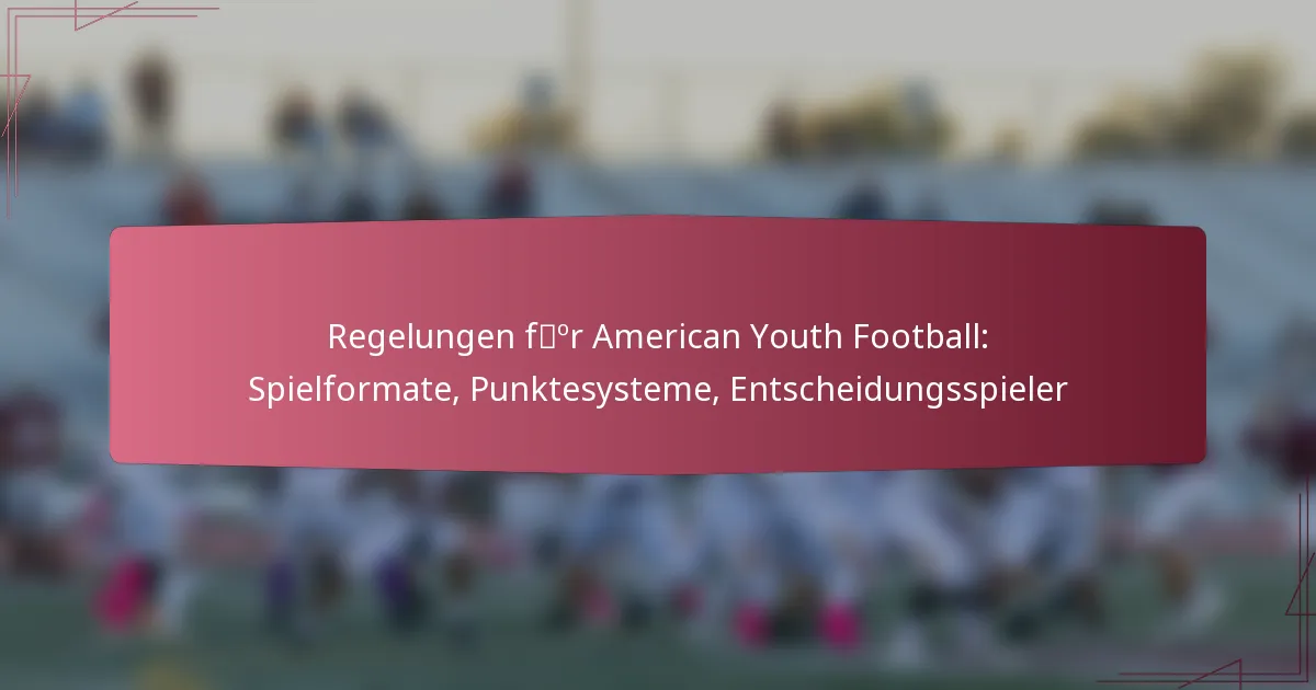 Der amerikanische Jugendfußball umfasst verschiedene Spielformate, hauptsächlich 7-gegen-7 und 11-gegen-11, die auf unterschiedliche Altersgruppen und Fähigkeitsniveaus zugeschnitten sind. Punkte werden durch Touchdowns, Field Goals und Safeties erzielt, wobei es je nach Liga Variationen gibt. Darüber hinaus sind Verfahren zur Entscheidung bei Unentschieden entscheidend, um die Gewinner im Falle gleicher Punktestände zu ermitteln, oft unter Einbeziehung von Verlängerungen oder Sudden-Death-Szenarien.