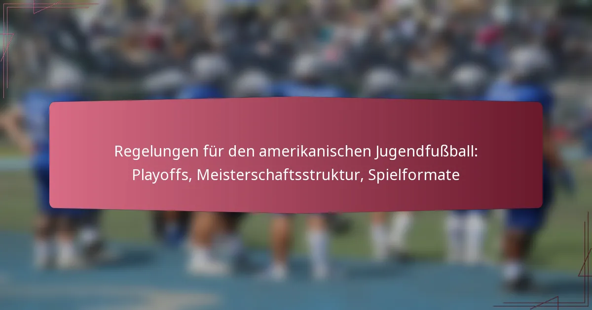 Die Vorschriften für den amerikanischen Jugendfußball umfassen wichtige Aspekte wie die Spielerberechtigung, Kadergrenzen und Spielregeln. Diese Richtlinien stellen sicher, dass die Spieler die Alters- und Gewichtsvoraussetzungen erfüllen, die Wohnsitzregeln einhalten und die erforderlichen medizinischen Freigaben besitzen. Darüber hinaus hilft das Verständnis der Kadergrenzen den Teams, die Einhaltung der Vorschriften zu gewährleisten und die Leistung zu optimieren. Vertrautheit mit diesen Vorschriften ist für Trainer, Spieler und Eltern unerlässlich, um ein faires und angenehmes Fußballerlebnis zu fördern.