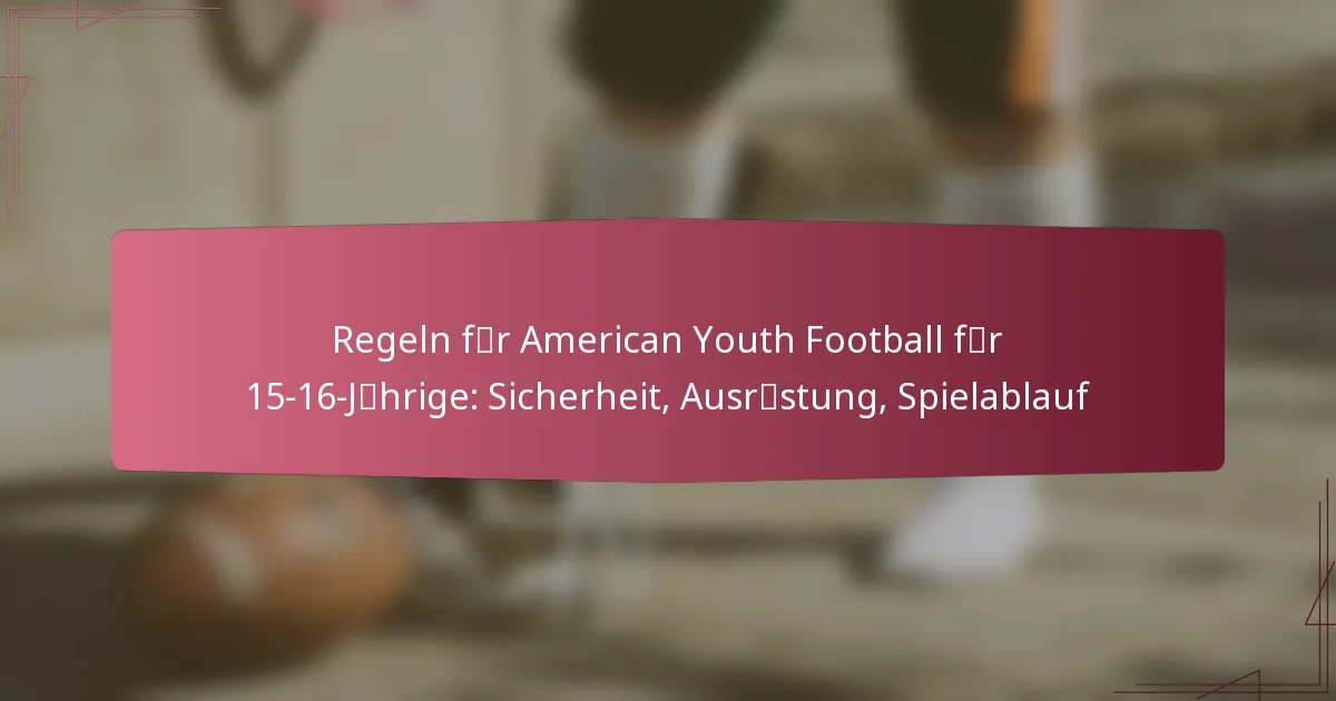 Die Spielregeln für American Youth Football im Alter von 13-14 Jahren konzentrieren sich darauf, Fairplay, Sicherheit und die Entwicklung von Fähigkeiten zu gewährleisten. Diese Regeln umfassen die Spieldauer, die Spieleranzahl und spezifische Vorschriften, die auf diese Altersgruppe zugeschnitten sind.